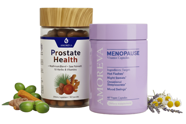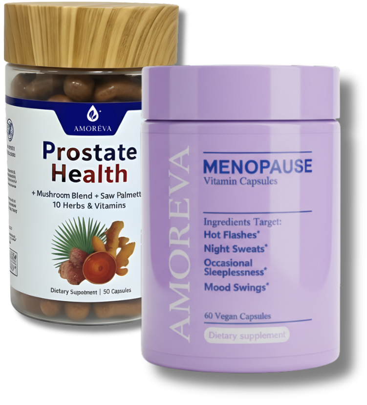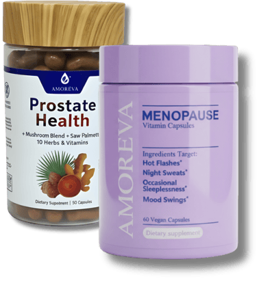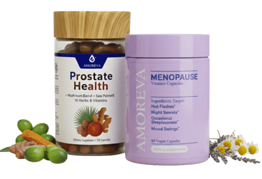 Amoréva uses plant-based ingredients that support hormonal balance, calmer sleep, and steadier urinary habits for anyone dealing with menopause changes or prostate discomfort.